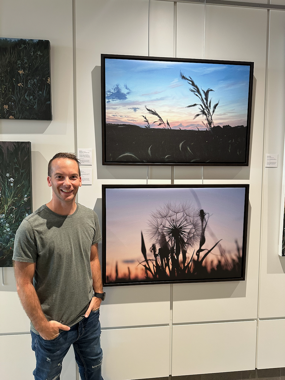 Most recently, he started combining his love of photography, with Graphic Design to create physical postcards (which you might catch around Airdrie at local shops, craft community markets & such), including two of his extraordinary pieces being celebrated and displayed at Inspire in “A Breath Beyond” exhibition till January 15, 2026.